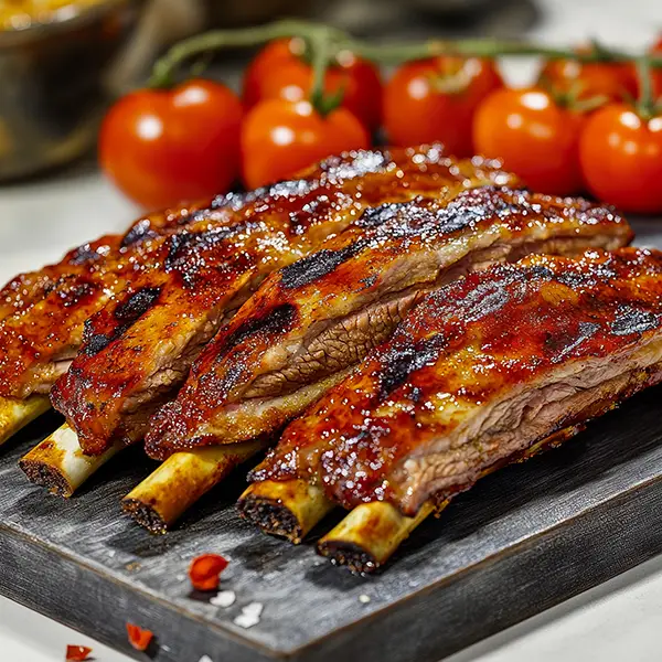 Our BBQ Spicy Ribs (Full Rack) are slow-cooked until tender and coated in our smoky, slightly sweet BBQ glaze.